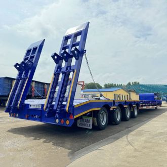 In addition to the structure introduced above, another important component of low bed trailer truck for sale in Guinea is the ramp. To facilitate the loading and unloading of construction machinery, large equipment, engineering vehicles, etc., the lowbed trailer for sale in Guinea is equipped with ramps, which include spring ramps and hydraulic ramps.